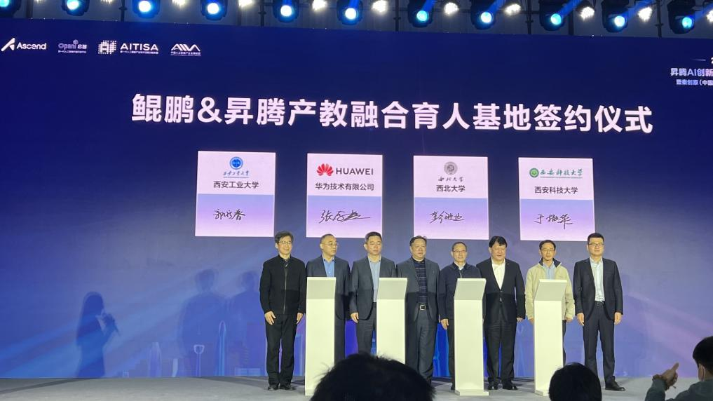 2022年11月16日,陕西省科技厅联合华为集团举办的秦创原(中国)人工智能开发者大会在西安浐灞国际会议中心开幕,陕西省科技厅副厅长韩开兴出席会议并致辞。会上举行了鲲鹏&昇腾产教融合育人基地签约仪式,英国365集团官网经理郭永春、经理助理吴杰出席签约仪式并签约。