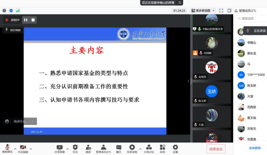 2021年12月30日下午,英国365集团官网组织开展疫情期间线上国基金一对一交流提升会,邀请公司李翰山教授进行交流指导,公司全体教师参加。