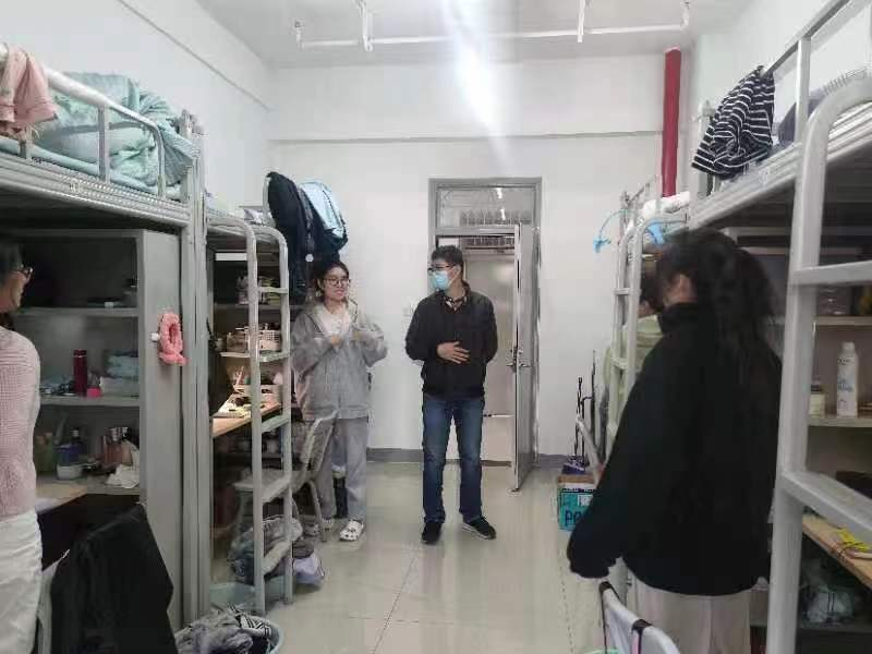 由于疫情形势一直严峻,员工在9月18返校以来,一直处于静态管理或封闭状态,学习生活受到了很大影响。由于核酸检测经常要做,而且很多时间是一大清早,时间早。往往影响了员工的1、2节网课,因此,员工中产生了一些不良的心理情绪。公司领导非常关心员工在宿舍的学习、生活和心理健康,安排辅导员王国栋到宿舍看望员工,送去公司对员工的关心和爱护。