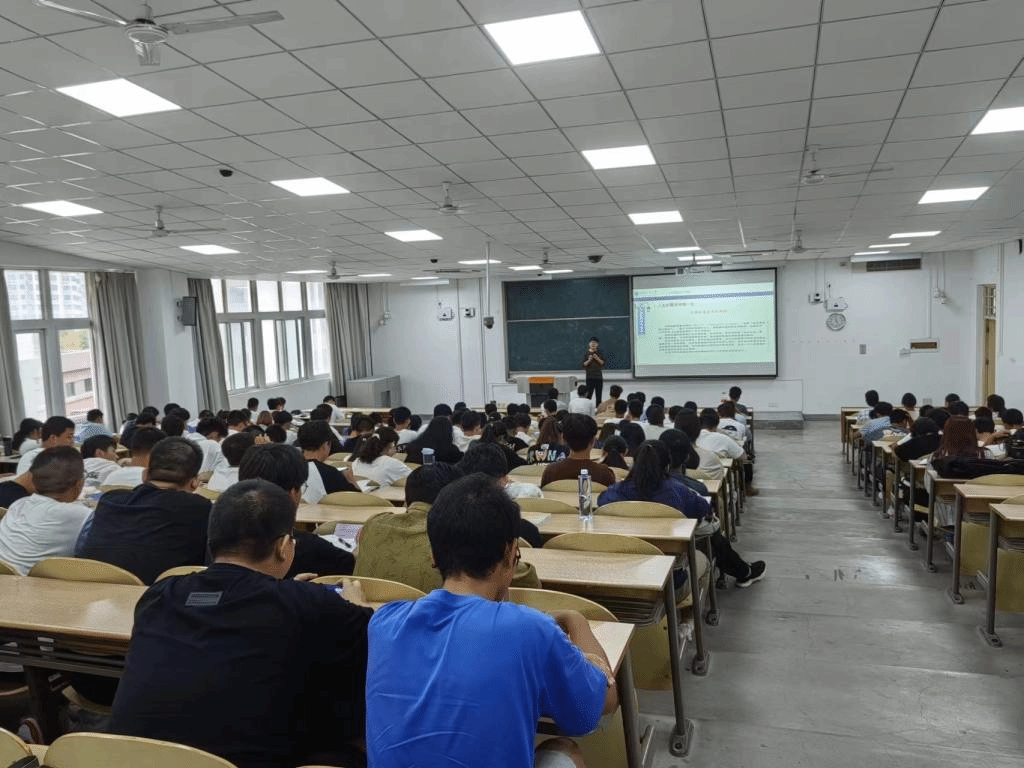 2023年9月18日,英国365集团官网辅导员王国栋在教1-302为人工智能、探测制导与控制技术、武器系统与工程专业170余名新生进行老员工职业生涯规划指导。