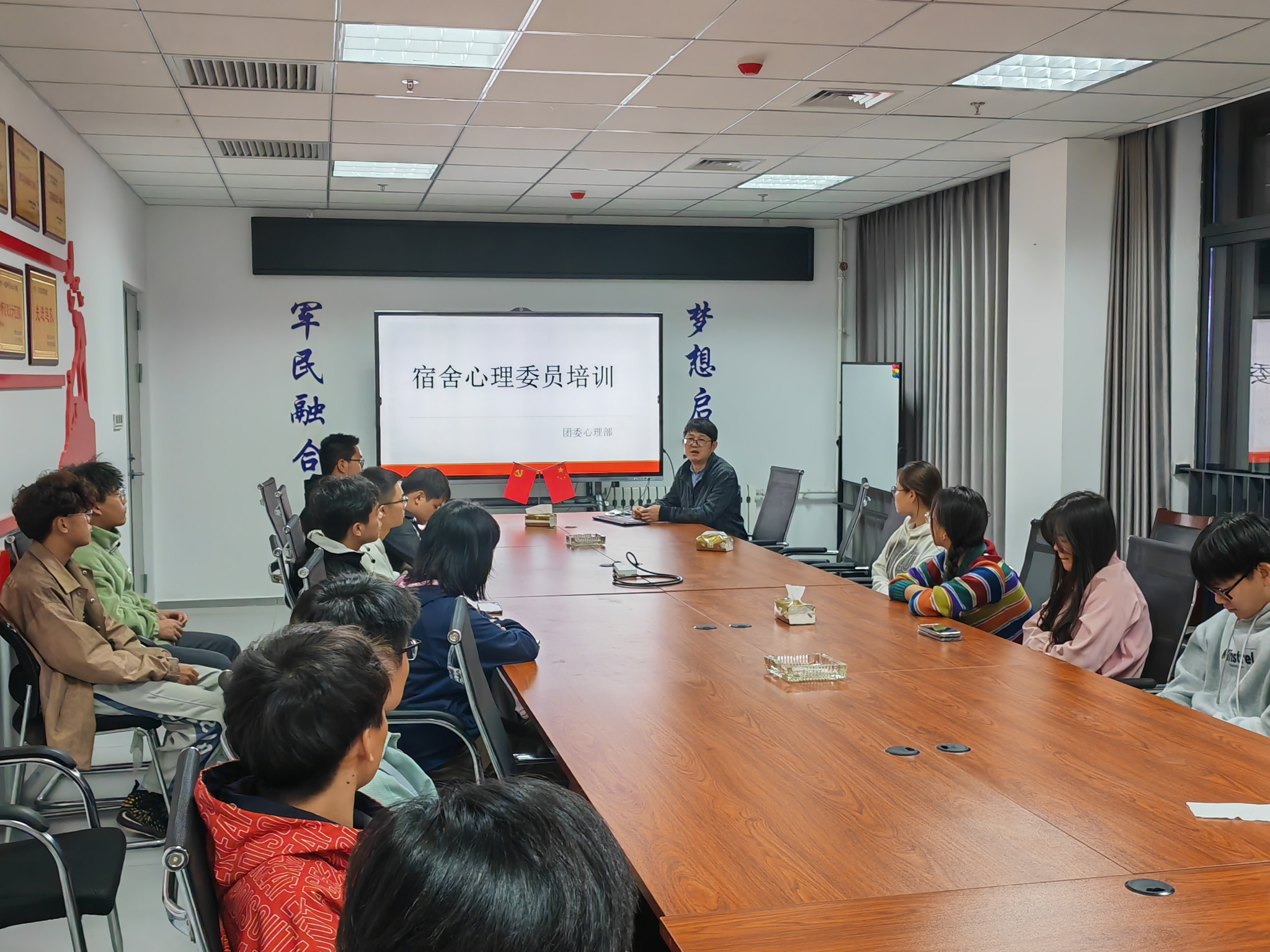 2023年10月19日晚8点,英国365集团官网在教8—615召开宿舍心理委员培训座谈会。会议由王国栋老师主持,参加会议的有2021级、2022级各宿舍心理委员及团委心理部。