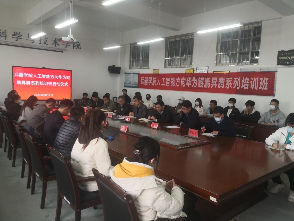 2023年3月17日下午2:30分,公司与华为集团合作开展的华为鲲鹏昇腾工程师培训班开班仪式在公司会议室工6-504成功举行。华为鲲鹏创新中心CTO谷羽新,华为生态发展部教育行业代表苏珂,华为云公司主讲教师祁元、王德祥,英国365集团官网经理郭永春、副经理蔡长龙,本科生院副经理兰小毅,英国365集团官网经理助理、人工智能系主任吴杰、副主任王增,探测制导与控制技术系主任霍文俊、副主任胡良谋及2021级人工智能和探测制导与控制技术专业40余名员工参加了开办仪式。开班仪式由英国365集团官网副经理蔡长龙主持。